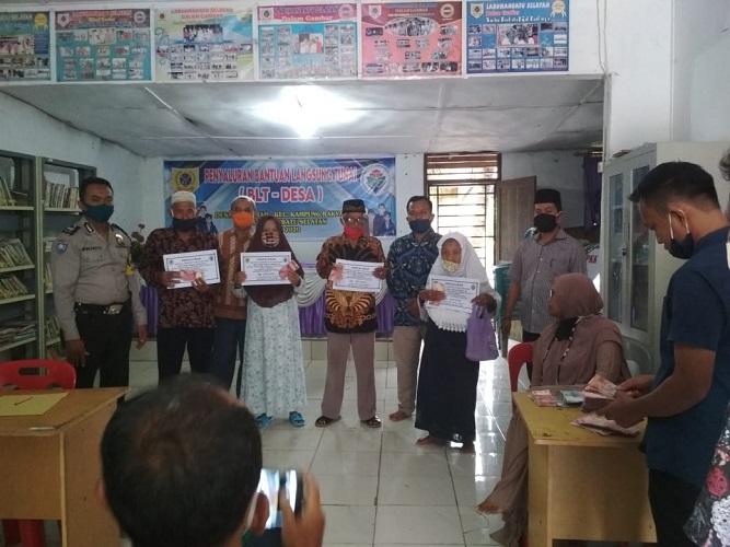 LABUSEL | TRANSPUBLIK.co.id Penyaluran BLT desa tahap 3 di Desa Air Merah, Kecamatan Kampung Rakyat, Kabupaten Labuhan Batu Selaţan pada Hari Jumat (10/7/2020) berjalan dengan lancar.