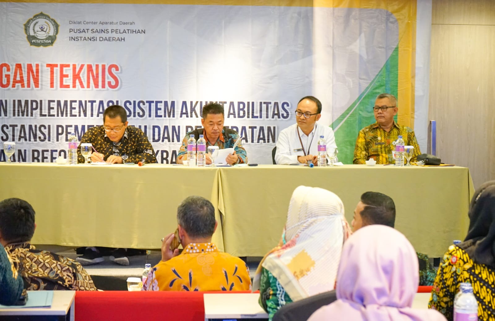 Hadir sebagai narasumber Deputi Koordinasi Pelaksanaan Kebijakan dan Evaluasi Reformasi Birokrasi, Akuntabilitas Aparatur dan Pengawasan I, Akhmad Hasmy, AK; Kepala Badan Pengawasan Keuangan dan Pembangunan (BPKP) Perwakilan Provinsi Riau, Bapak Fauqi Akhmad Kharir, Analis Kebijakan Muda (Sub Koordinator) Deputi Bidang Kelembagaan dan Tata Laksana M.Iqbal Budianto, S.KoM, M.E.Biz, Pelaksana Deputi Koordinasi Pelaksanaan Kebijakan dan Evaluasi Reformasi Birokrasi, Akuntabilitas Aparatur dan Pengawasan Chafidloh Mufidah, A.Md, AK dan Kementerian Pendayagunaan Aparatur Negara dan Reformasi Birokrasi (KEMENPAN RB)