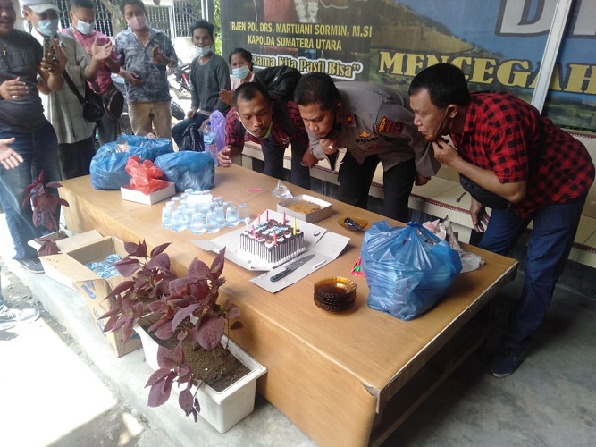 Kegiatan HPN ini dipimpin langsung Kapolsek Medan Area Kompol. Faidir Chaniago dan Kasat Reskrim Ibtu. Rianto bersama Insan Pers sambil meniup lilin dan potong kue di Mapolsek Medan Area yang berlangsung Khidmat pada Selasa (9/2/2021).