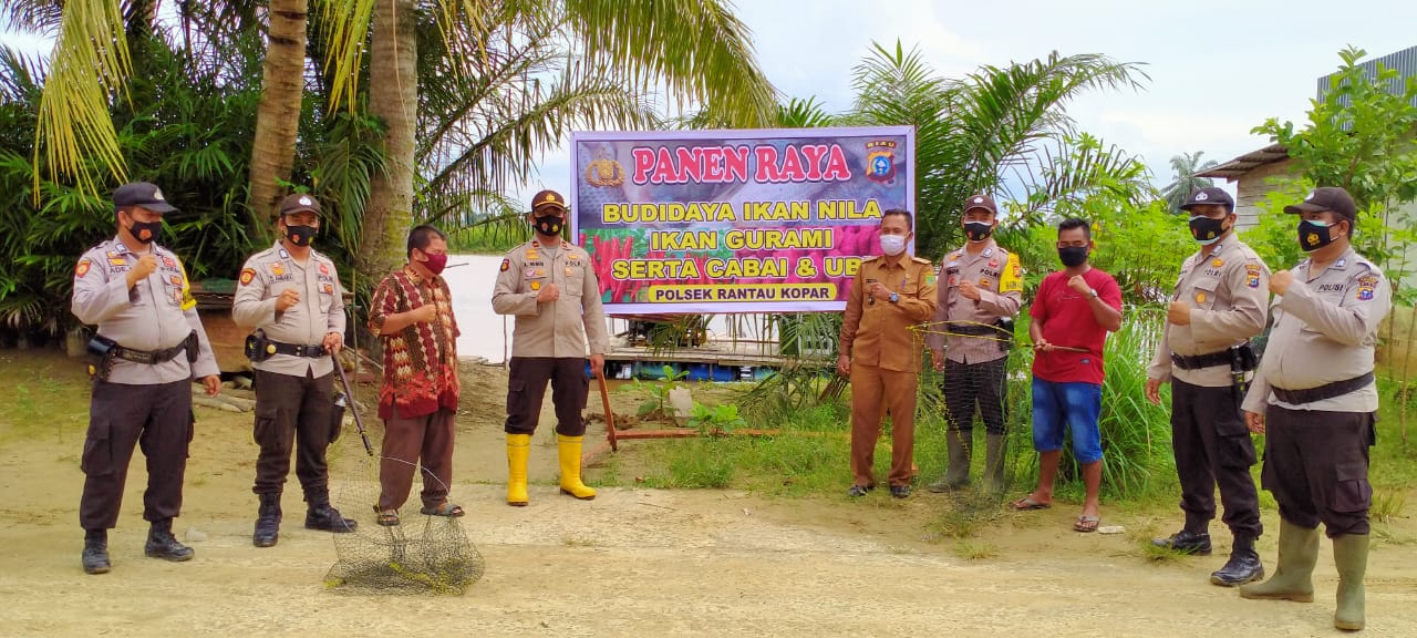 ROKAN HILIR | TRANSPUBLIK.co.id – Personel Polsek Rantau Kopar melakukan Panen Raya Ketahanan Pangan Polsek Rantau Kopar di Kep. Sekapas Kec. Rantau Kopar, Senin (28/12/2020).