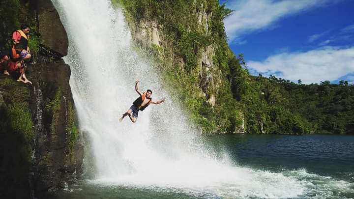 Terlihat potret salah satu pengunjung yang sedang berenang dan melompat dari air terjun tersebut. Nah jika teman tertarik dan ingin berkunjung ketempat ini harus merencanakan dengan hal yang matang ya seperti biaya untuk menyewa kapal dan keperluan yang lain. Selamat berkunjung.