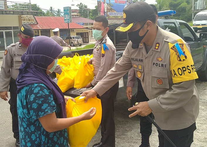 “Bagi sembako dan masker yang kami laksanakan ini dalam rangka pelaksanaan “Operasi Aman Nusa II” menindaklanjuti kebijakan pemerintah dalam mencegah penyebaran Covid-19 khususnya di Kabupaten Mandailing Natal,” ucap Kapolres Madina.