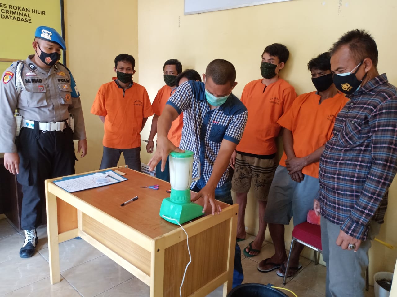 Penasehat Hukum dari kantor Sartono, S.H.,M.H. & Associates, M. Jefri Saragih,S.H. (PH penunjukkan), Kasat Tahti Polres Rokan Hilir IPTU Hendra Yadri, Perwakilan dari Si Propam Polres Rokan Hilir BRIPTU M Riad dan Penyidik Pembantu Sat Res Narkoba Polres Rohil.
