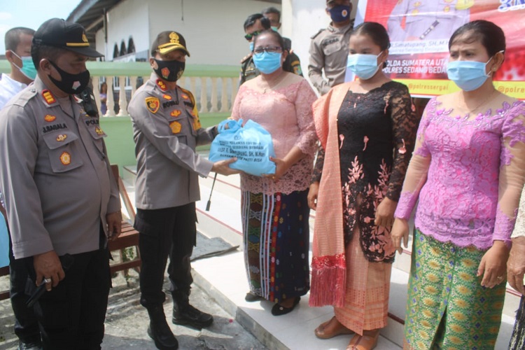 Kapolres Sergai mengatakan Kegiatan Minggu Kasih di Gereja HKI Sialang Buah,Kecamatan Teluk Mengkudu, Kabupaten Serdang Bedagai dengan memberikan sembako kepada Jemaat Gereja kurang mampu dan terdampak pandemi Covid19