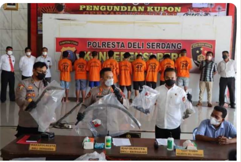 Pada keterangannya Kapolresta DS Kombes Pol Irsan Sinuhaji SIK MH menjelaskan kepada Awak Media yang hadir terkait kronologis kejadian penangkapan ,dimana akhirnya Petugas berhasil mengamankan sembilan orang tersangka.