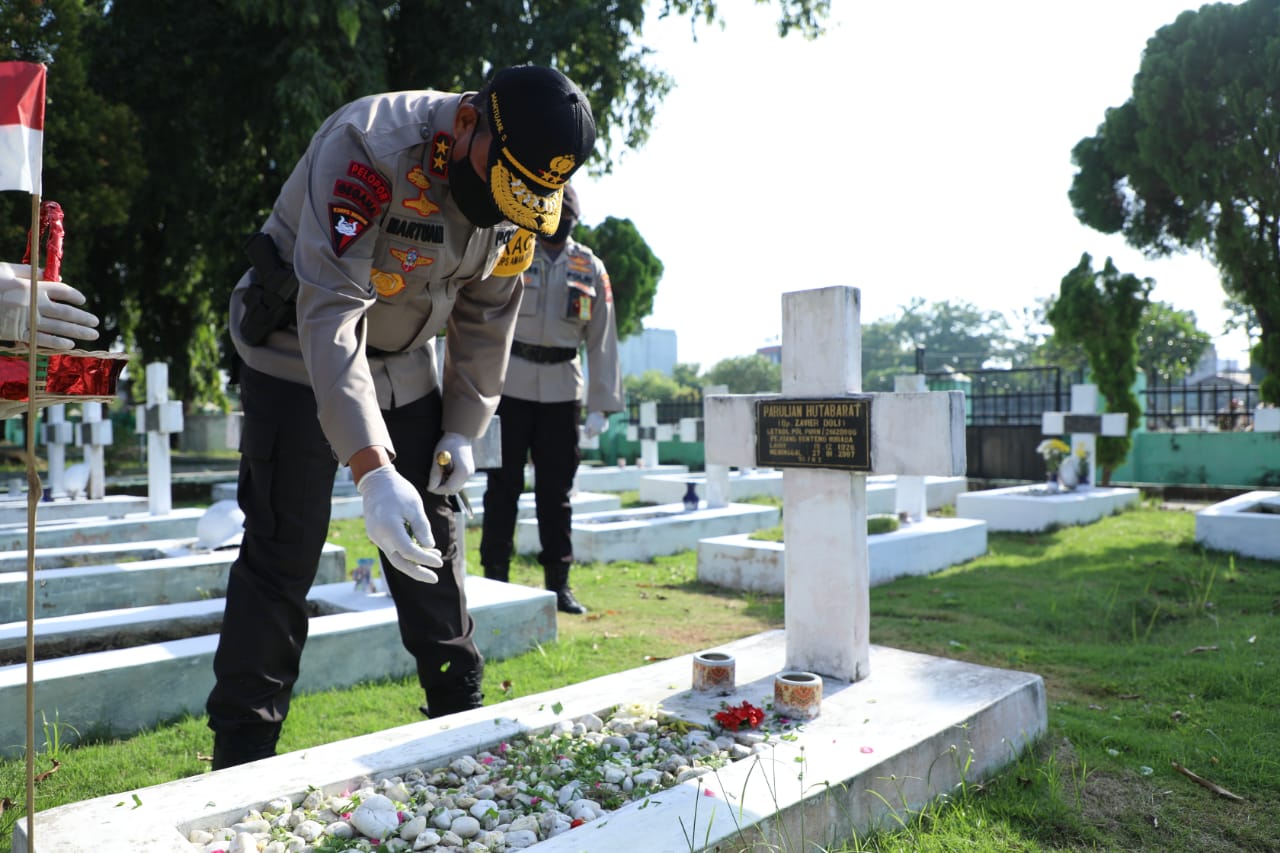 Kapolda Sumut serta rombongan dilanjutkan menyambangi serta tabur bunga di makam Letjen Pol H. Raja Inal Siregar yang telah pernah menjabat Gubernur Sumut, Peltu Termalem Sinulingga, Mayor CHB H. Ruslimalin, Kolonel Maskadiran, Letkol Pol (purn) Parulian Hutabarat, AKP (purn) NS Palawi dan Kapten Pol ANM Mangatas Siahaan.