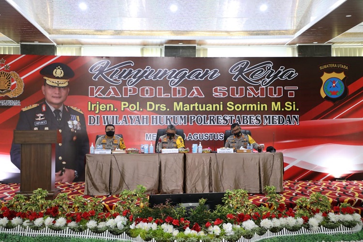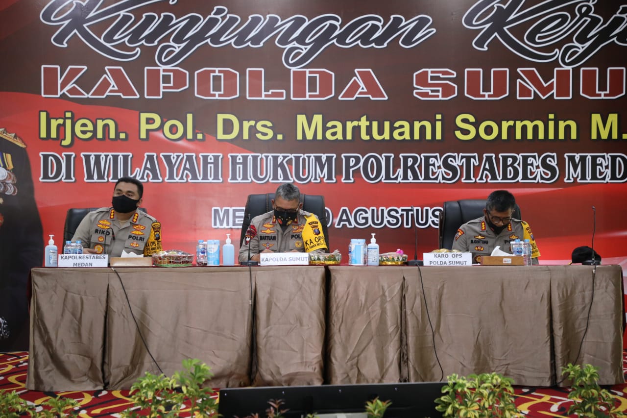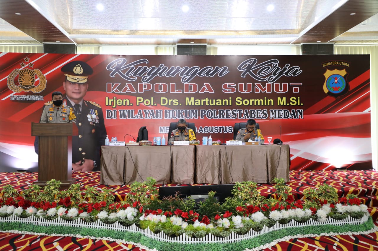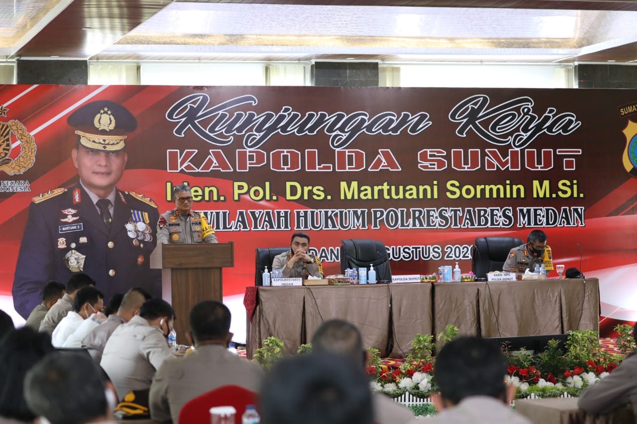 “Tujuan kedatangan saya kesini adalah untuk memberikan semangat dan dukungan untuk personil Polrestabes Medan,” kata Kapolda Sumut.