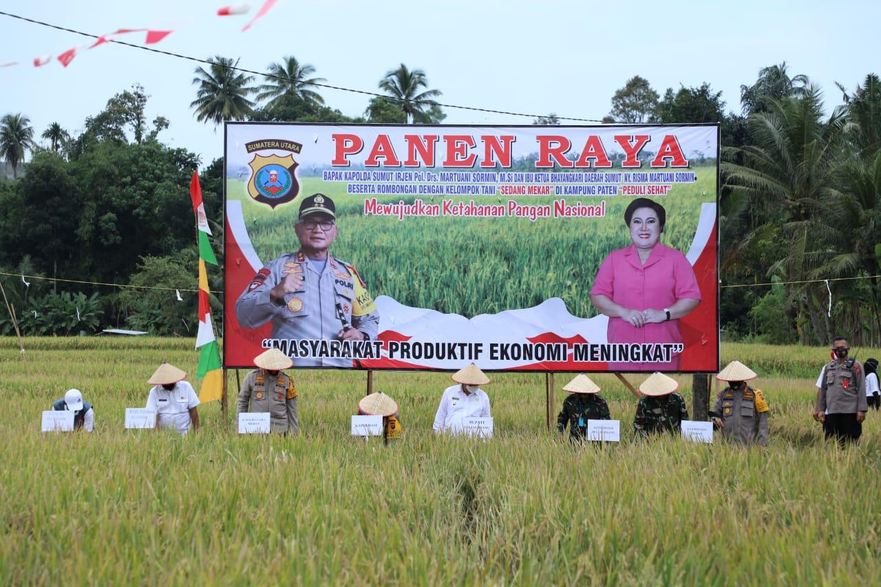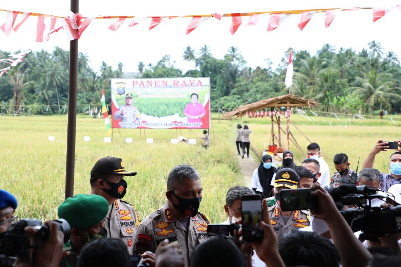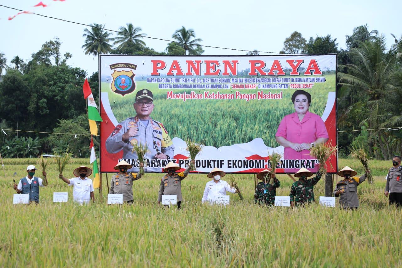 DELI SERDANG | TRANSPUBLIK.co.id – Setelah ramah tamah Kapolda Sumut menyempatkan meninjau lokasi sawah yang sudah menguning dan siap di panen di kampung paten peduli sehat, dalam kesempatan ini Kapolda Sumut bersama Wabup Deli Serdang dan unsur Forkopimda Deli Serdang langsung turun ke sawah, Rabu (19/8/2020).