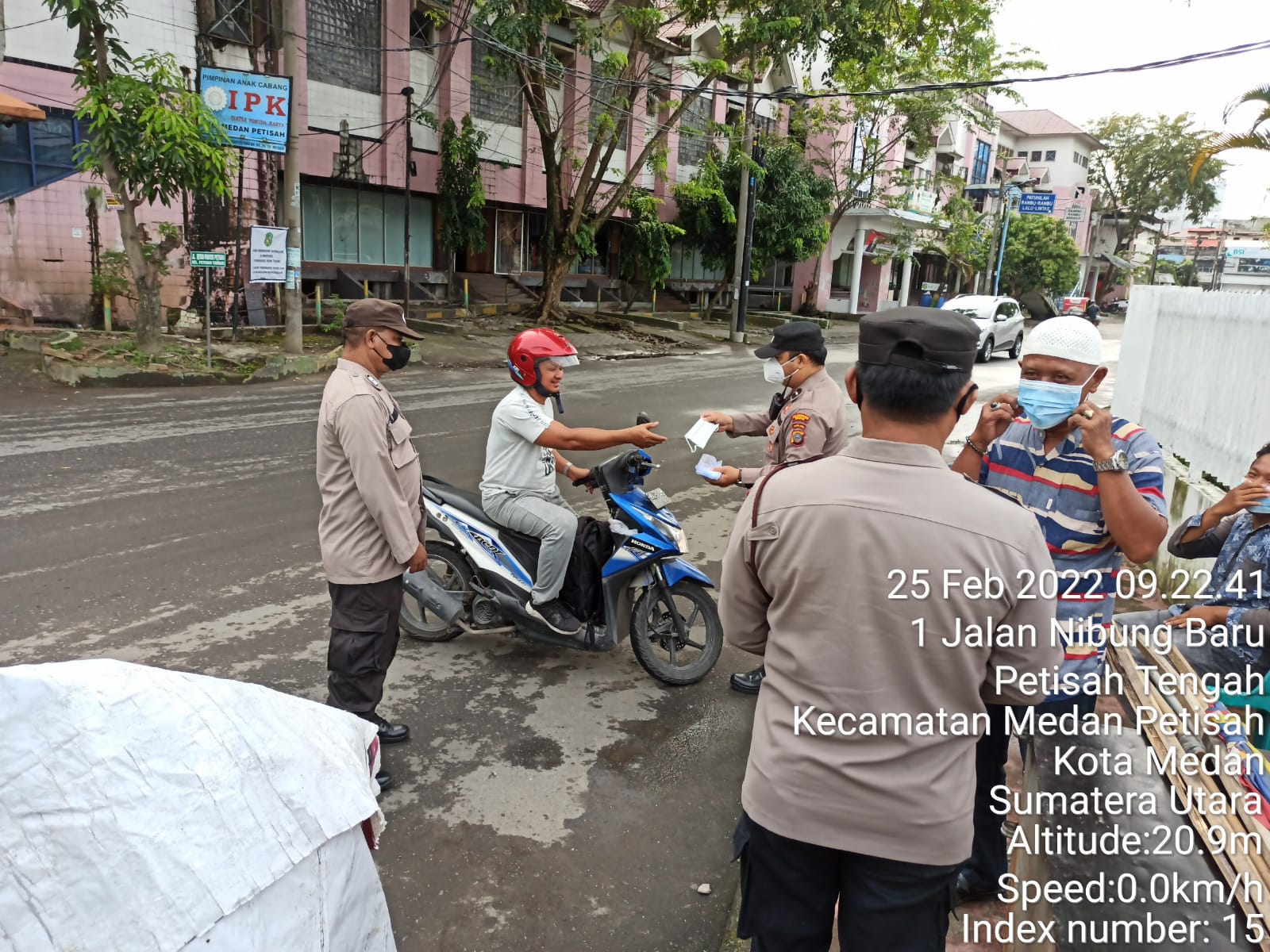 Operasi yustisi yang dilaksanakan di Pasar Petisah Jalan Kota Baru 3 Kel Petisah Tengah Kec. Medan Petisah dipimpin Padal Panit Intelkam Iptu Sukses Sinulingga dengan personel Aiptu Nurdin Kaban, Aiptu S. Karo Karo, Aiptu Heri Kiswanto, Aipda Hilman Silaban, Bripka Ronal A. Situmorang
