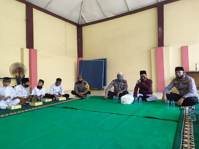 MEDAN | TRANSPUBLIK.co.id – Polsek Medan Helvetia melaksanakan silaturahmi dan ngaji bareng dengan anak – anak yatim piatu Pengajian Masjid Al Ikhlas Setia Luhur yang dilaksanakan di Aula Wicaksana Laghawa Polsek Medan Helvetia, Jum’at (17/7/2020) pagi.