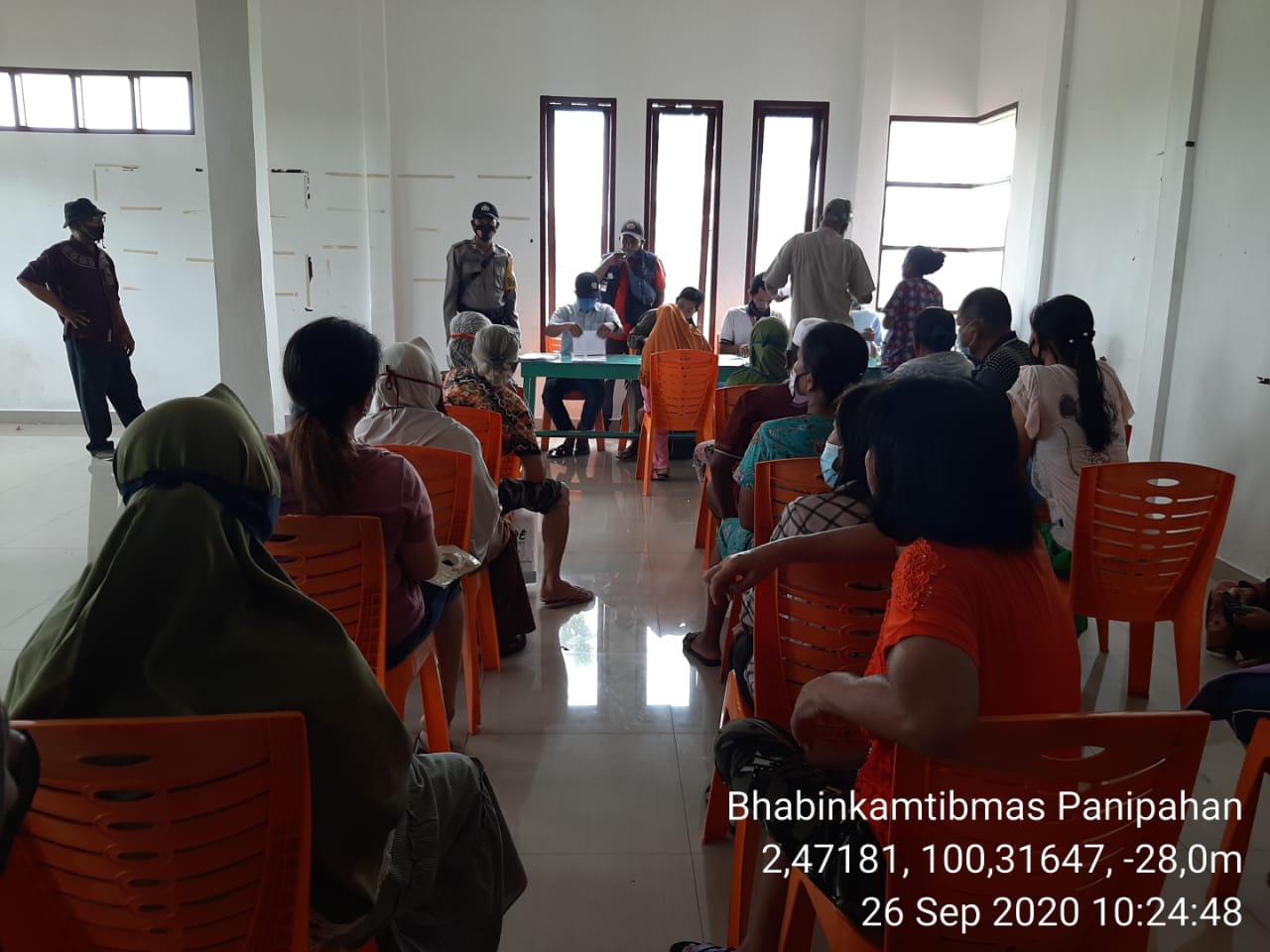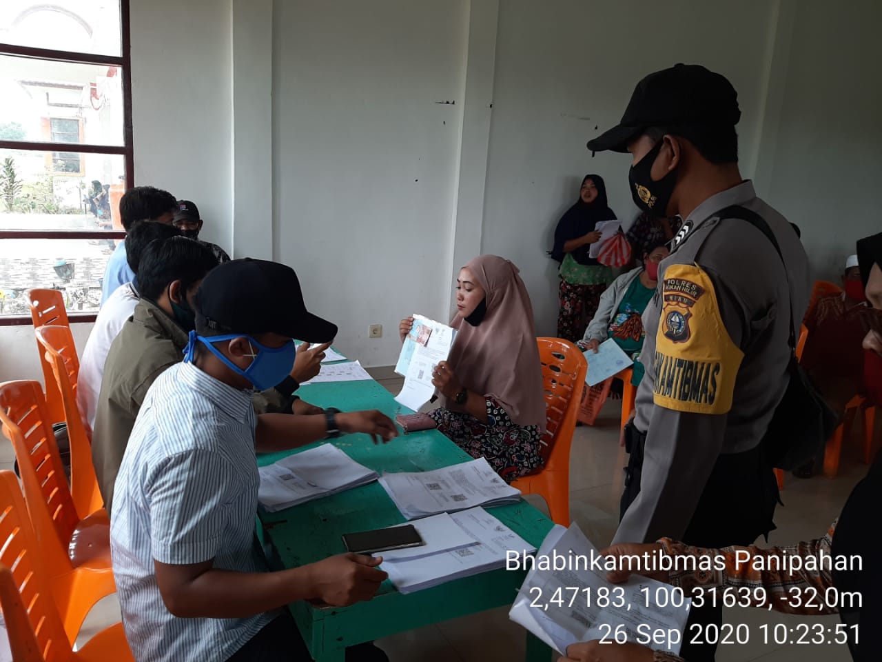 PANIPAHAN | TRANSPUBLIK.co.idPolsek Panipahan, Polres Rokan Hilir mendistribusikan bantuan BST tunai kepada masyarakat yang kurang mampu terkait dampak Penyebaran Virus Corona Disease (Covid- 19) di Kecamatan Pasir Limau Kapas, Kabupaten Rokan Hilir (Rohil), Sabtu (26/9/2020) sekira pukul 09.00 WIB.