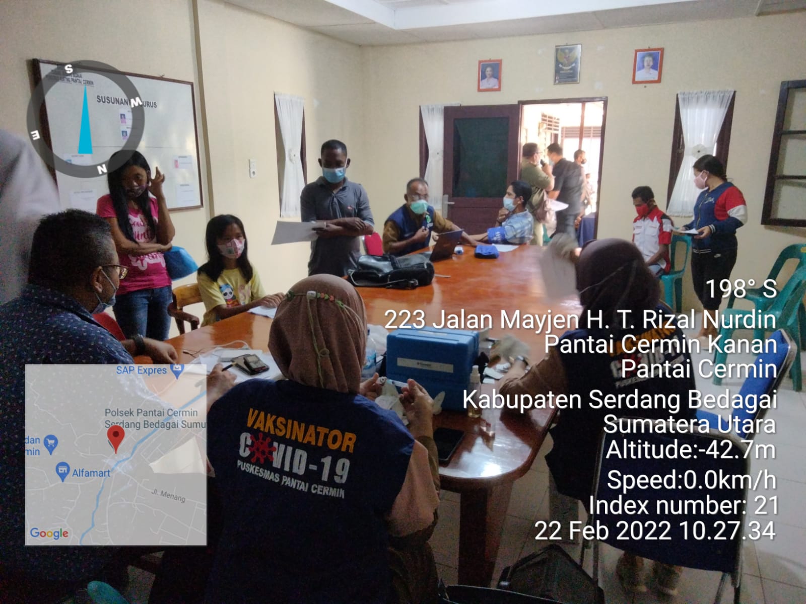Adapun lokasi berada  di  Mapolsek Pantai Cermin di Desa Pantai Cermin Kanan Kec. Pantai Cermin, diikuti okeh Petugas: