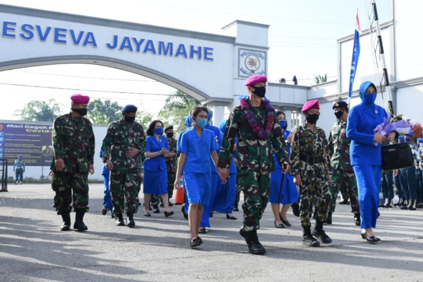 BELAWAN | TRANSPUBLIK.co.id – Perwakilan Prajurit dan PNS Pangkalan Utama TNI Angkatan Laut I Belawan dan Yonmarhanlan I menyambut Kedatangan Komandan Pangkalan Utama TNI Angkatan Laut I (Danlantamal) I Belawan yang baru Kolonel Marinir I Made Wahyu Santoso beserta Ketua Korcab I Daerah Jalasenastri Armada I Ny. Erna I Made Wahyu Santoso di Mako Lantamal I Belawan Medan, Senin (8/6/2020).