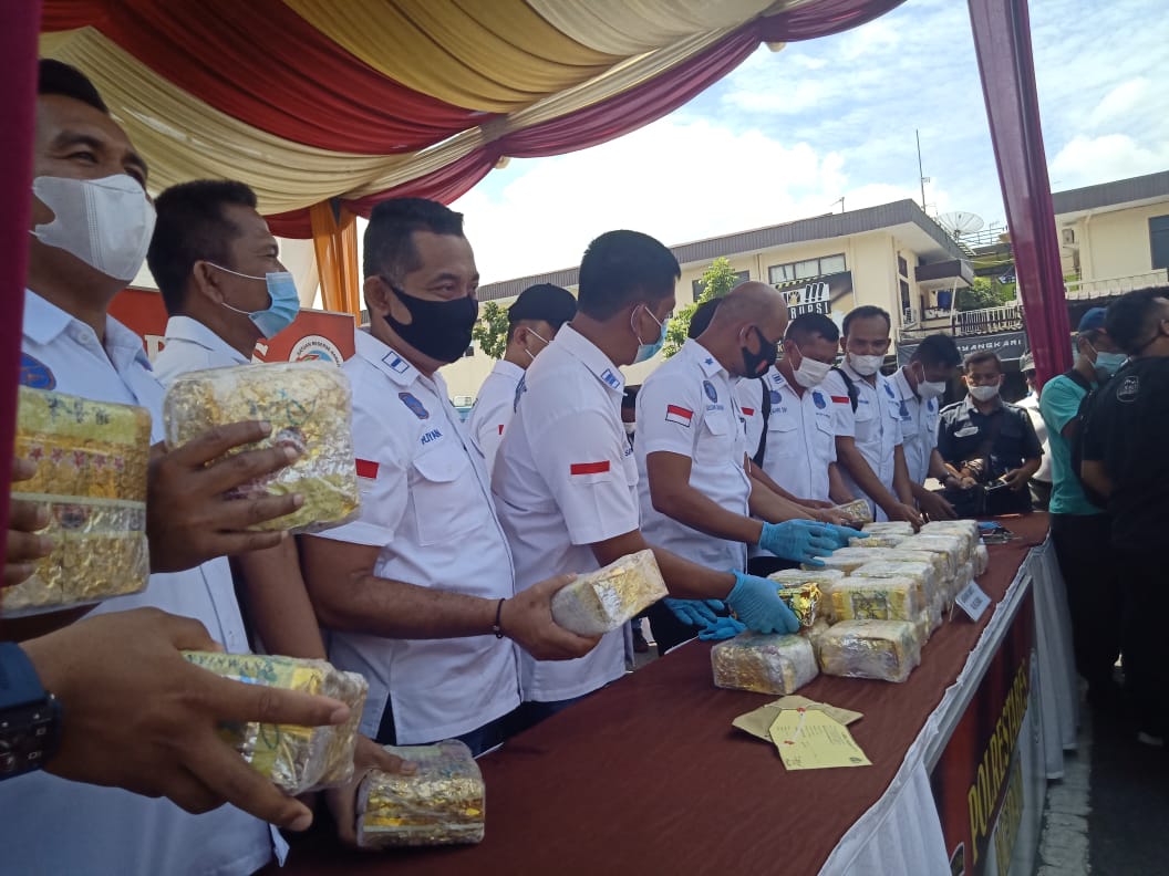 “Dalam pengungkapan tersebut, menyita barang bukti satu unit mobil Inova Nopol BK 1208 DO, serta 4 tersangka bandar dan kurir masing – masing Muhammad Herry (37) warga Batang Kuis, (kurir), Eko Susilo (34) warga Karya Medan, Muhammad Joni (33) Aceh dan Irwan Syahputra (41) warga Aceh, “Barang haram yang disita itu dikirim, diperoleh dari Aceh – Sumatra Utara, Pungkasnya Kapolrestabe Medan KombesPol Riko Sunarko