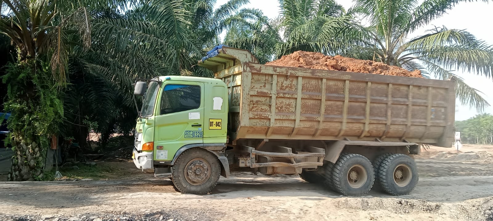 Pantauan  dilapangan puluhan angkutan (truk) berwarna Hijau dan oranye yang mengangkut material tanah datang dari arah Simpang 3 Sei Silau Timur menuju pembangunan pintu TOL 156 tidak ada yang ditutup sehingga material tanah berjatuhan ke badan jalan.((TP/tra-sb)