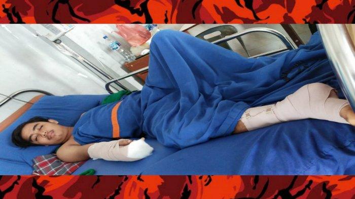 MEDAN | TRANSPUBLIK.co.id – Radja Jaya Wardhana, warga Jalan Pasar IX, Desa Manunggal, Kecamatan Medan Labuhan ini sebelumnya dibantai sekelompok orang hingga tangan dan kakinya nyaris putus.