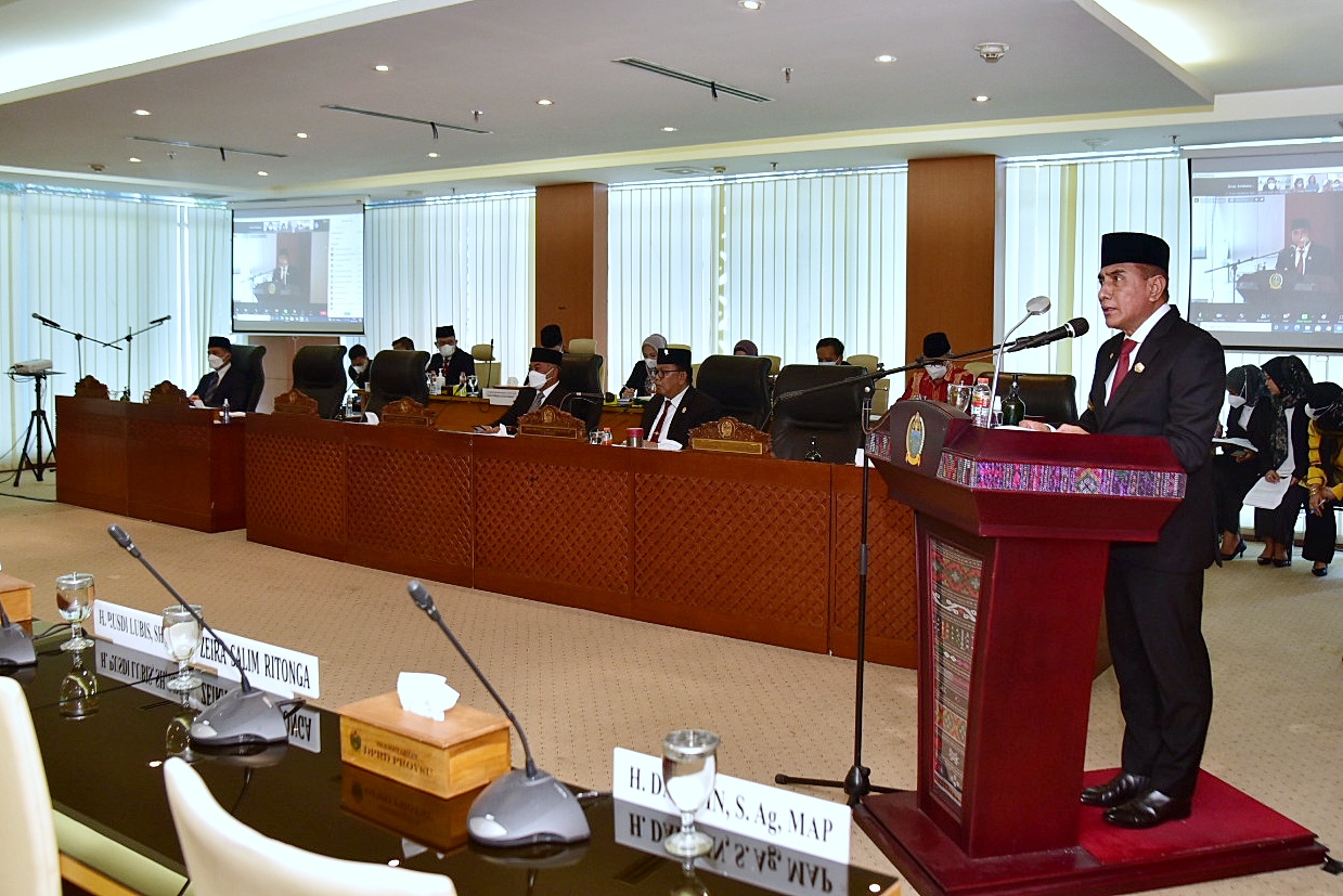 Hadir di antaranya Ketua DPRD Sumut Baskami Ginting bersama pimpinan dewan lainnya, Wakil Gubernur