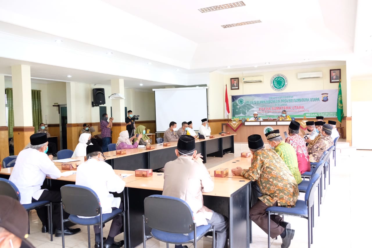Kapolda Sumut Irjen Pol Drs Martuani Sormin Siregar MSi, serta PJU Polda Sumut sesampainya di Kantor MUI disambut oleh Prof, Dr H Abdullah Syah MA (Ktua Sumut) MUI, Dr H Maratua Simanjuntak (wakil ketua Sumut) MUI, Dr H Arso SH, MAg (Sekretaris Umum) MUI dan Dr H Ardiansyah LC, MA (Bendahara Umum) MUI Jalan Sutomo Medan.