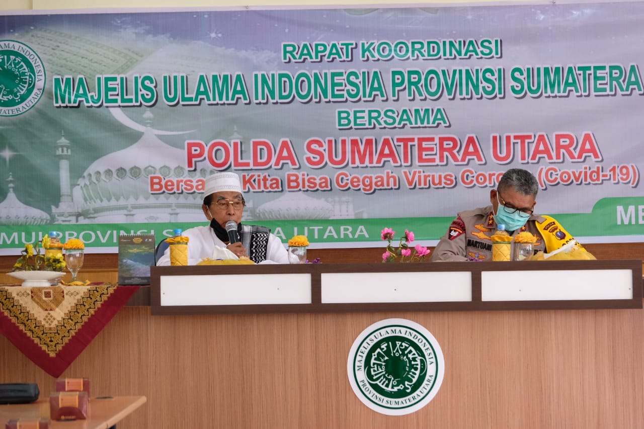 MEDAN | TRANSPUBLIK.co.id — Pada hari Senin (6/4/2020) Kapolda Sumut Irjen Pol Drs Martuani Sormin Siregar MSi menggelar Rakor (Rapat Koordinasi) bersama MUI Sumut di Ruangan Kantor MUI Sumut Medan.