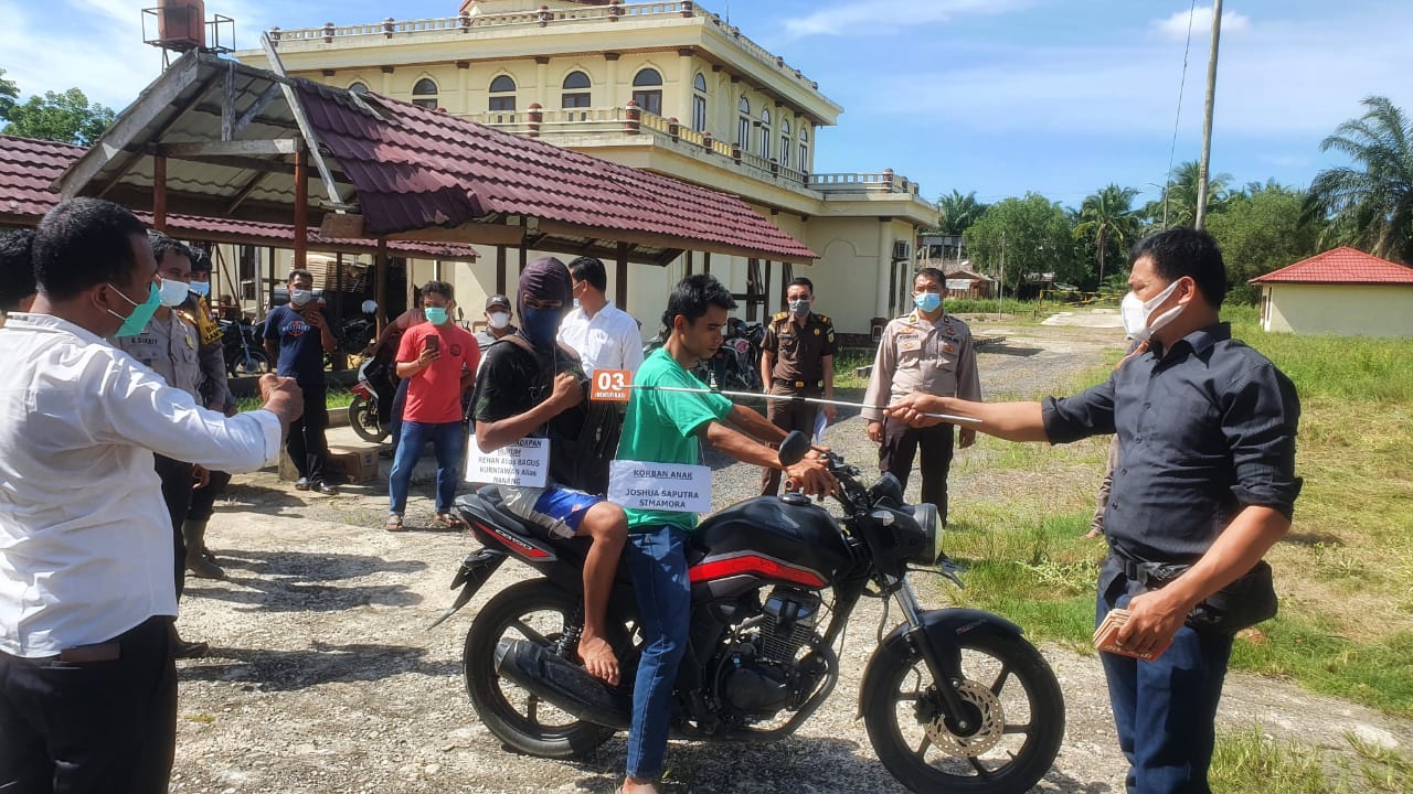 Rekonstruksi digelar dimana Pelaku (anak laki-laki dibawah umur) langsung memperagakan adegannya. Korban ( Joshua Saputra Simamora ) dilakoni adegannya ini, digelar di Mako Polsek Bangko Pusako Polres Rohil, Senin 31 Mei 2021 sekira jam 14.00 WIB.