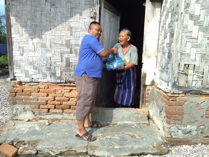 SERGAI | TRANSPUBLIK.co.id – Relawan SSA Berbagi Sembako bagi masyarakat yang paling membutuhkan di Bandar Khalifah, Kabupaten Sergai, Kamis (14/5/2020).