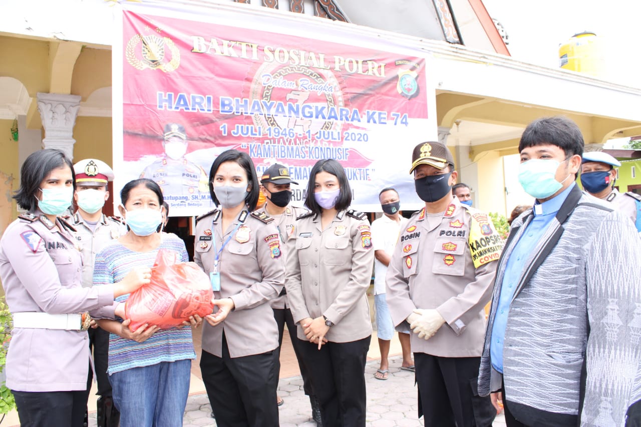 Menurut Kapolres kegiatan tersebut dalam rangka memperingati Hari Bhayangkara ke-74 dengan menggelar Kegiatan bhakti sosial dengan memberikan bantuan sembako kepada jemaat Gereja HKBP Sei Rampah.
