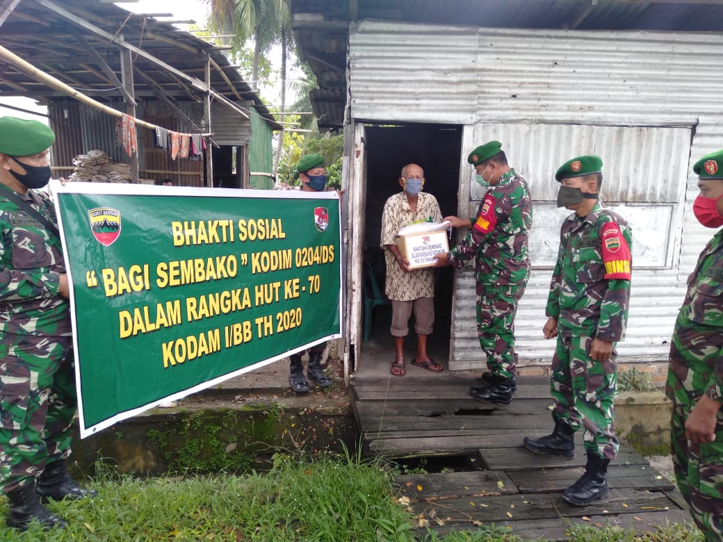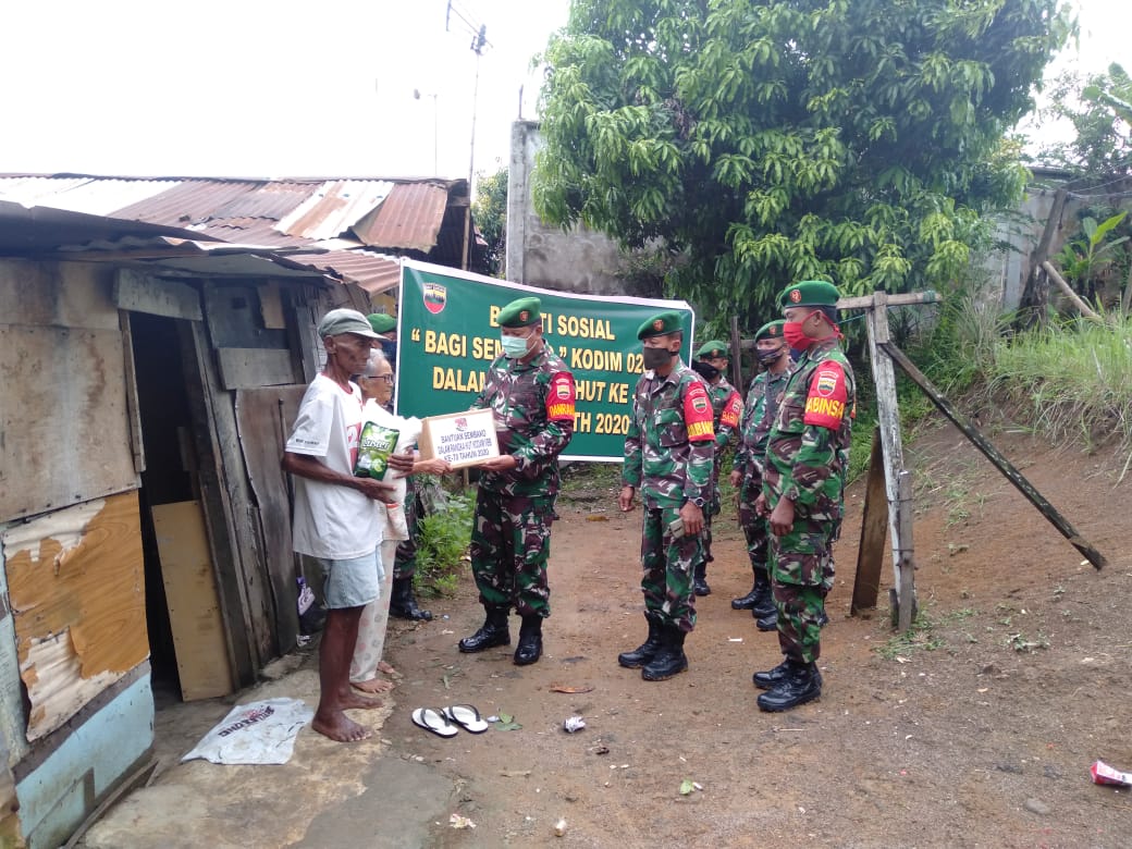 TEBING TINGGI | TRANSPUBLIK.co.idDitengah pandemi covid-19, dalam rangka menyambut Hari Ulang Tahun (HUT) Kodam I/BB Ke-70, tepat pada tanggal (20/6/2020) Koramil 13/TT Kodim 0204/DS melaksanakan Bakti Sosial dengan membagikan paket sembako bagi warga yang terdampak covid-19, Kamis (11/6/2020).