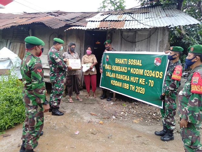 “Pembagian sembako dari Kodim 0204/DS  yang kita bagikan adalah untuk warga yang membutuhkan. Selain pembagian sembako kita juga melaksanakan Donor Darah dan merehap rumah warga tidak mampu di wilayah Kodim 0204/DS,hal ini sebagai wujud kepedulian TNI khususnya Kodim 0204/DS untuk dapat membantu meringankan kebutuhan masyarakat yang terdampak vivid-19,” ucap Budiono.