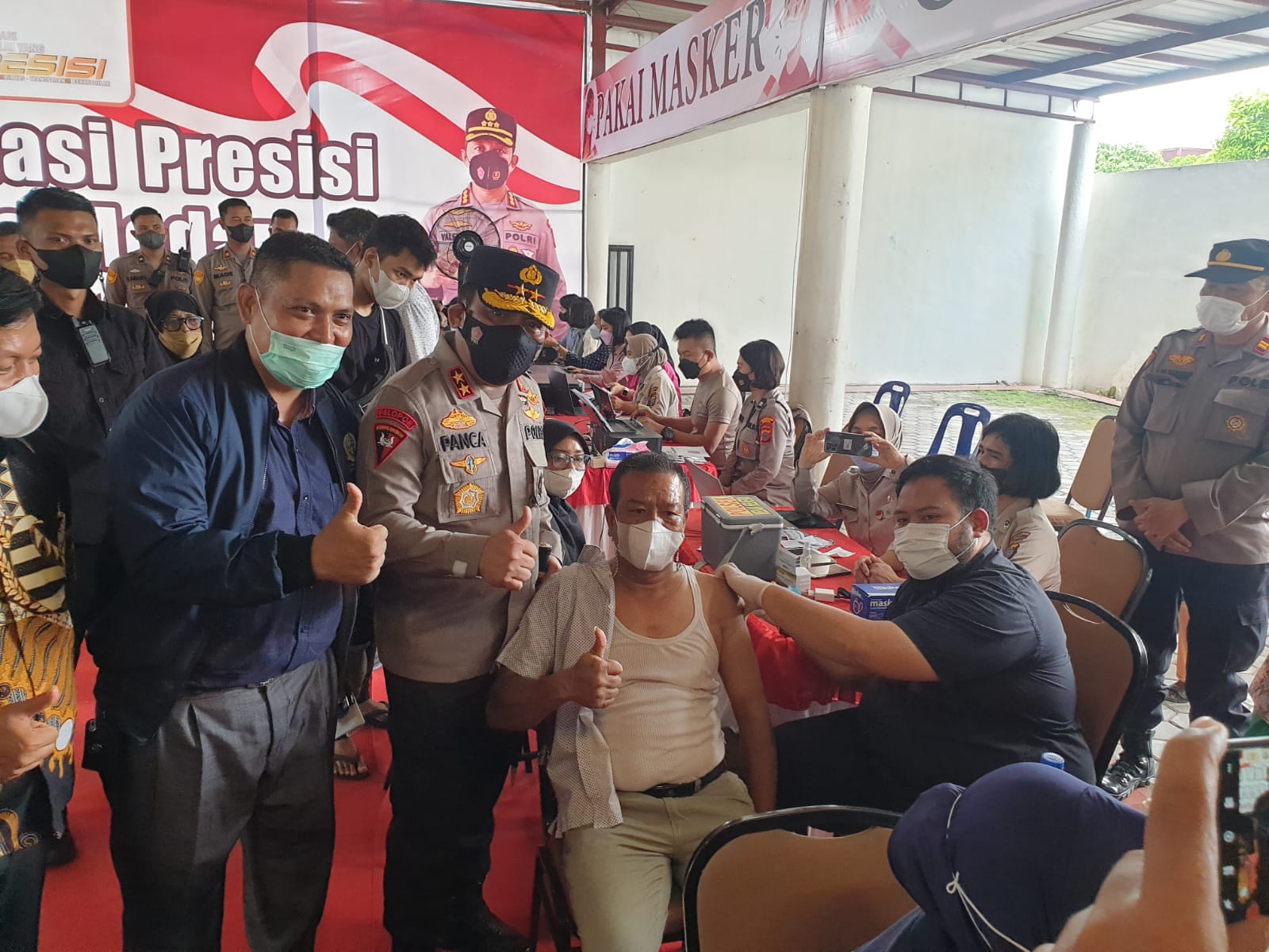 Kegiatan vaksinasi yang digelar di PRSU Jalan Gatot Subroto, Kota Medan dihadiri langsung oleh Kapolda Sumut Irjen Pol Drs RZ Panca Putra Simanjuntak.