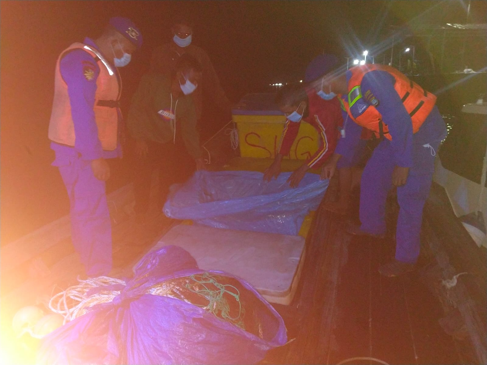 Dari hasil pemeriksaan setelah sebelumnya telah dilakukan pemeriksaan suhu tubuh menggunakan Thermo Scan, ditemukan Dokumen Kapal tersebut tidak Lengkap dan telah diperingatkan, menghimbau agar selalu Waspada dalam keselamatan berlayar di laut, Jumlah ABK 3 orang dan telah diberikan Masker karena tidak memiliki Masker, bermuatan Fiber berisi ikan dan tidak ada ditemukan barang ilegal atau yang melanggar Hukum.