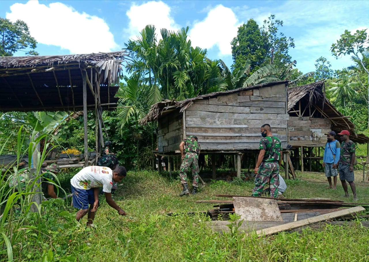KEEROM | TRANSPUBLIK.co.id -Sebagai wujud kepedulian terhadap keindahan dan kebersihan kampung, serta harus bisa menjadi pelopor dan teladan bagi masyarakat dalam melaksanakan gotong royong. Hal inilah yang mendorong personel Pos Karang untuk selalu hadir membantu di tengah-tengah masyarakat melalui kegiatan karya bhakti di Kampung Yuwainda, Distrik Waris, Sabtu (20/2/2021).