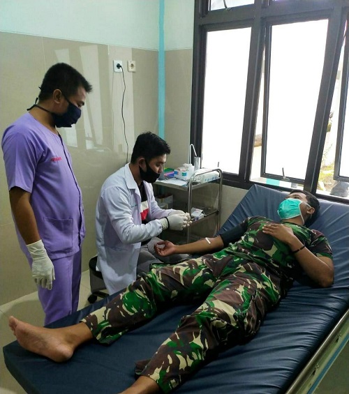 Mayor Afandi menjelaskan bahwa personel Pos 5 Maba SSK II memberikan pertolongan berupa donor darah dalam rangka memberikan pertolongan kepada Bapak Rispano yang saat ini sedang mengidap penyakit dan membutuhkan pendonor darah O. Saat ini kepada Bapak Rispano sedang dirawat di RSUD Kota Maba