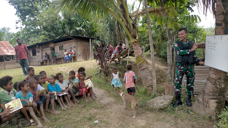 Satgas Yonif 512 Mengajarkan Anak-anak Membaca di Perbatasan Papua