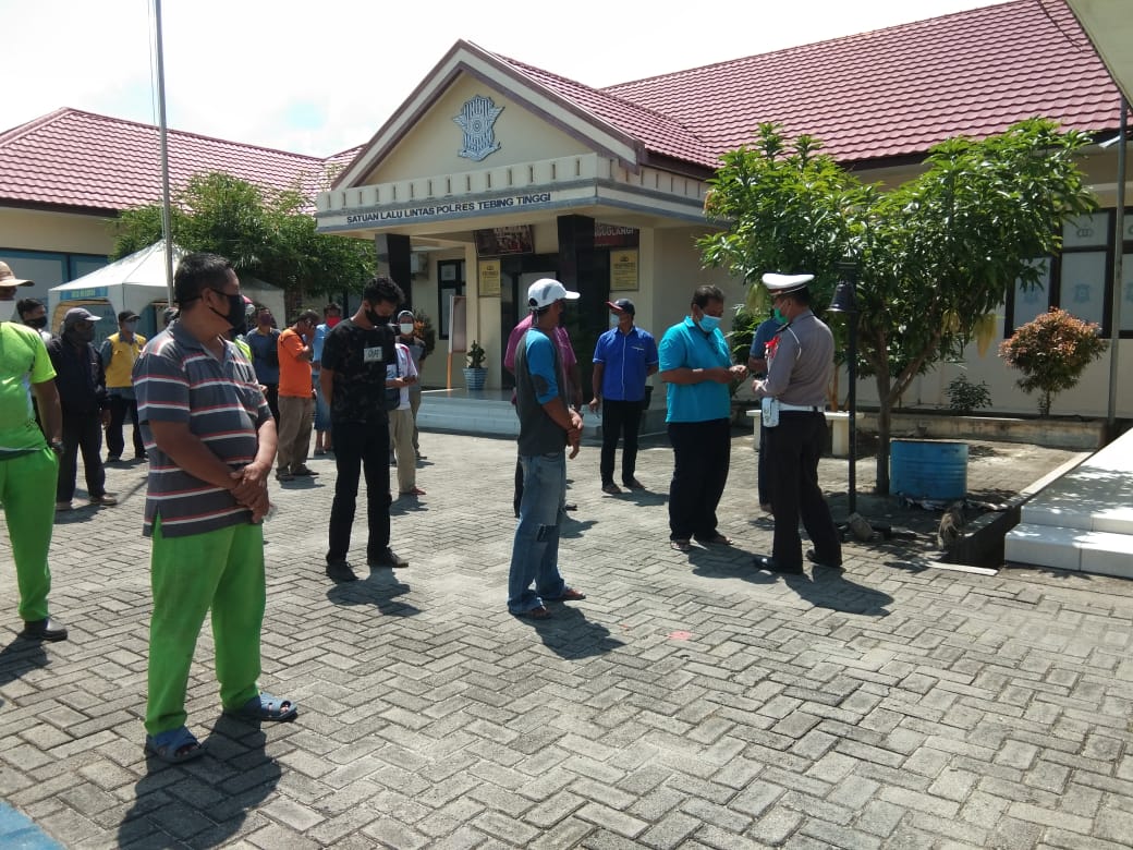 Satuan Lalu Lintas Polres Tebing Tinggi melaksanakan sosialisasi dan pelatihan terhadap pengendara betor dan pengemudi bus, di kantor Satlantas Polres Tebing Tinggi, Kamis (4/6/2020).