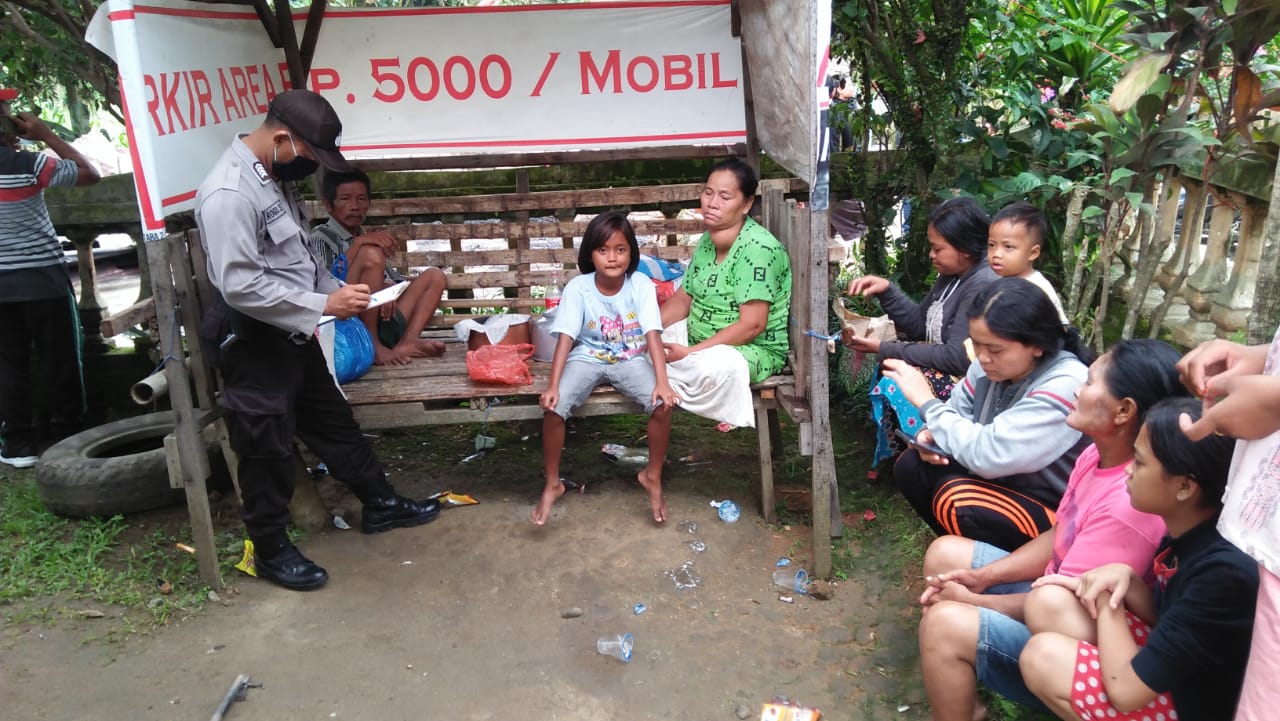 Personil Polsek Bangun yang menerima laporan turun ke lokasi kebakaran untuk melakukan evakuasi dan penyelidikan serta mengumpulkan barang bukti.