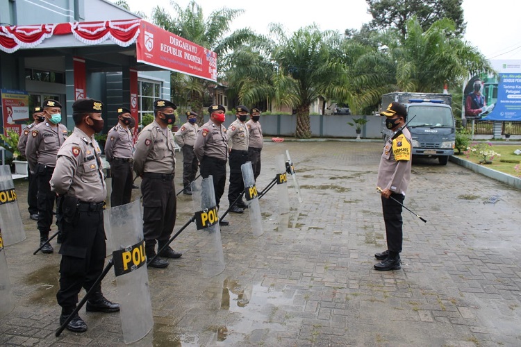 Dalam kesempatan itu, Kapolres langsung memimpin apel di seluruh titik Posko dan menyampaikan arahannya.