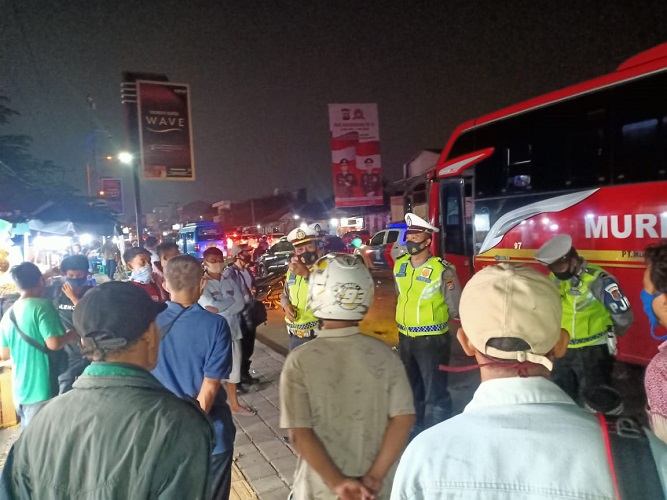 SERANG | TRANSPUBLIK.co.idPersonel Ditlantas Polda Banten melaksanakan Kegiatan Kepolisian yang Ditingkatkan (KKYD), dalam bentuk patroli dialogis yang dilakukan di Terminal Pakupatan, Pangkalan Ojek Ksb, Arimbi Bawah, dan Kemang Pusri, Jum’at (7/8/2020) sekira pukul 21.00 WIB.