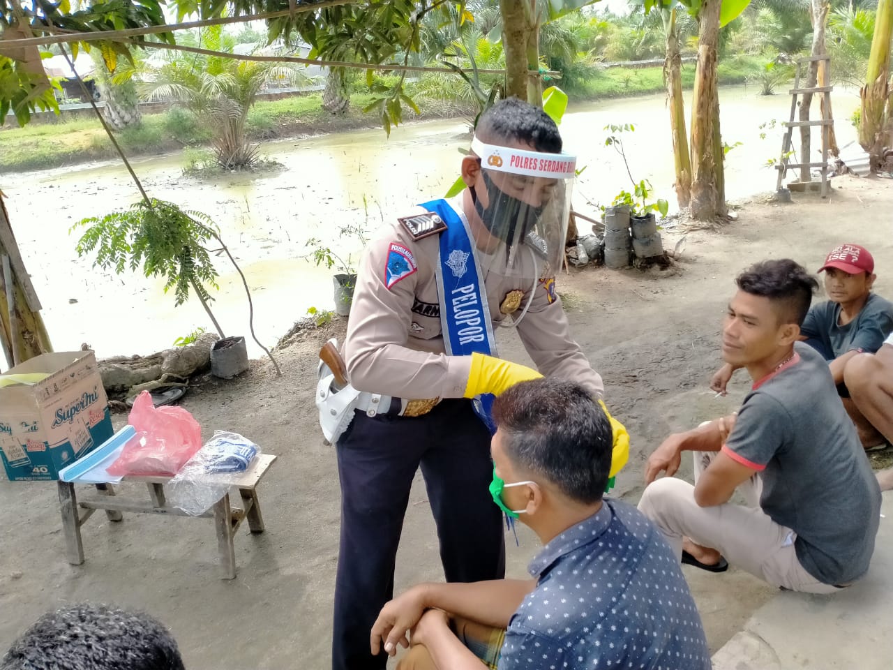 SERGAI | TRANSPUBLIK.co.id – Sosialiasi Pencegahan penyebaran Covid-19, Satuan Lalu Lintas Polres Serdang Bedagai mengajak masyarakat menjadi pelopor pencegahan Covid-19, bertempat di Dusun I, Desa Pematang Ganjang, Kec. Sei Rampah, Kab. Serdang Bedagai, Senin (22/6/2020) sekira pukul 10.30 WIB.