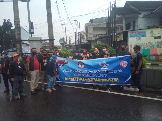 MEDAN | TRANSPUBLIK.co.id – Sosialisasi Pilkada Kota Medan di Era Pandemi Covid-19 oleh PPK Kecamatan Medan Selayang. Dalam rangka meningkatkan minat masyarakat dalam Pilkada 2020, maka KPU Kota Medan melakukan Sosialisasi kepada masyarakat di wilayah Kota Medan, dimana Kecamatan Medan Selayang merupakan salah satu kecamatan yang ada di 21 kecamatan Kota Medan, Jumat (13/11/2020).