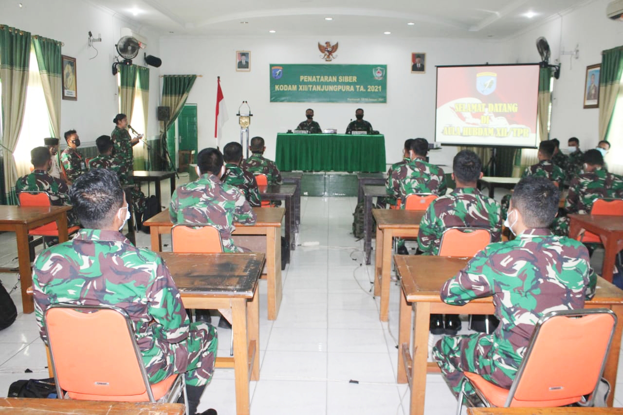 Dalam sambutannya, Kasandidam XII/Tpr, Letkol Chb Teguh menyampaikan, perkembangan teknologi informasi saat ini sudah maju sedemikian pesat, apabila tidak dikelola dengan baik, diantisipasi dan tidak dipersiapkan sejak awal akan melahirkan berbagai macam ancaman serius. Bahkan lebih dari itu, ancaman Siber telah melahirkan medan perang baru yang disebut Perang Siber (Cyber Warfare).