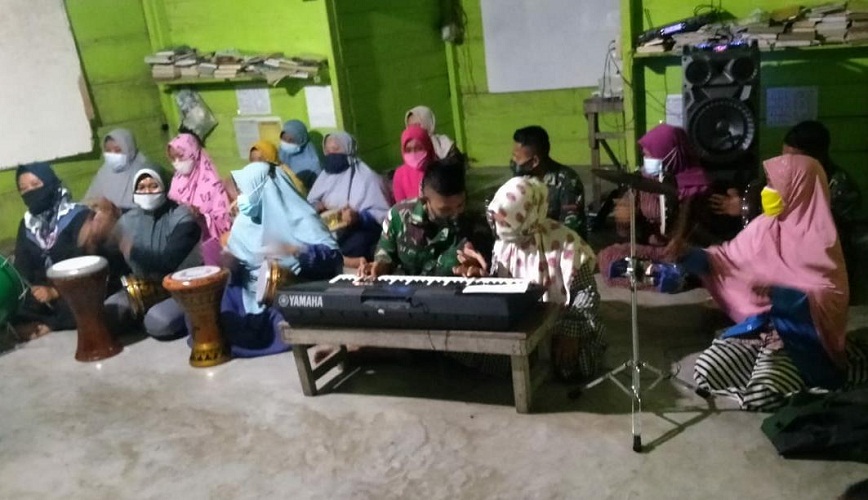 KEEROM | TRANSPUBLIK.co.id – Untuk menjaga kelestarian seni dan budaya bangsa, anggota Satgas Yonif Mekanis 512/QY mengaktifkan kembali kelompok Marawis ibu-ibu di Kampung Naramben, Distrik Skanto, Kabupaten Keerom, Papua, Kamis (1/4/2021).