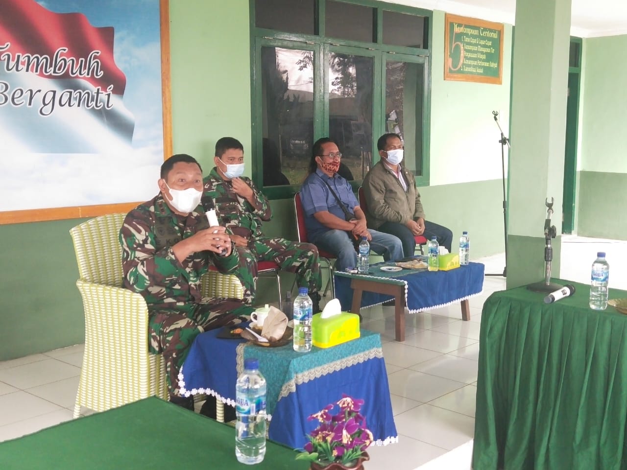 Dalam sambutannya, Dandim menjelaskan bahwa penanganan pencegahan penyebaran Covid-19 di lokasi wisata pemandian air panas di Desa Semangat Gunung agar dilakukan konsisten dengan penerapan disiplin Protokol Kesehatan secara ketat.