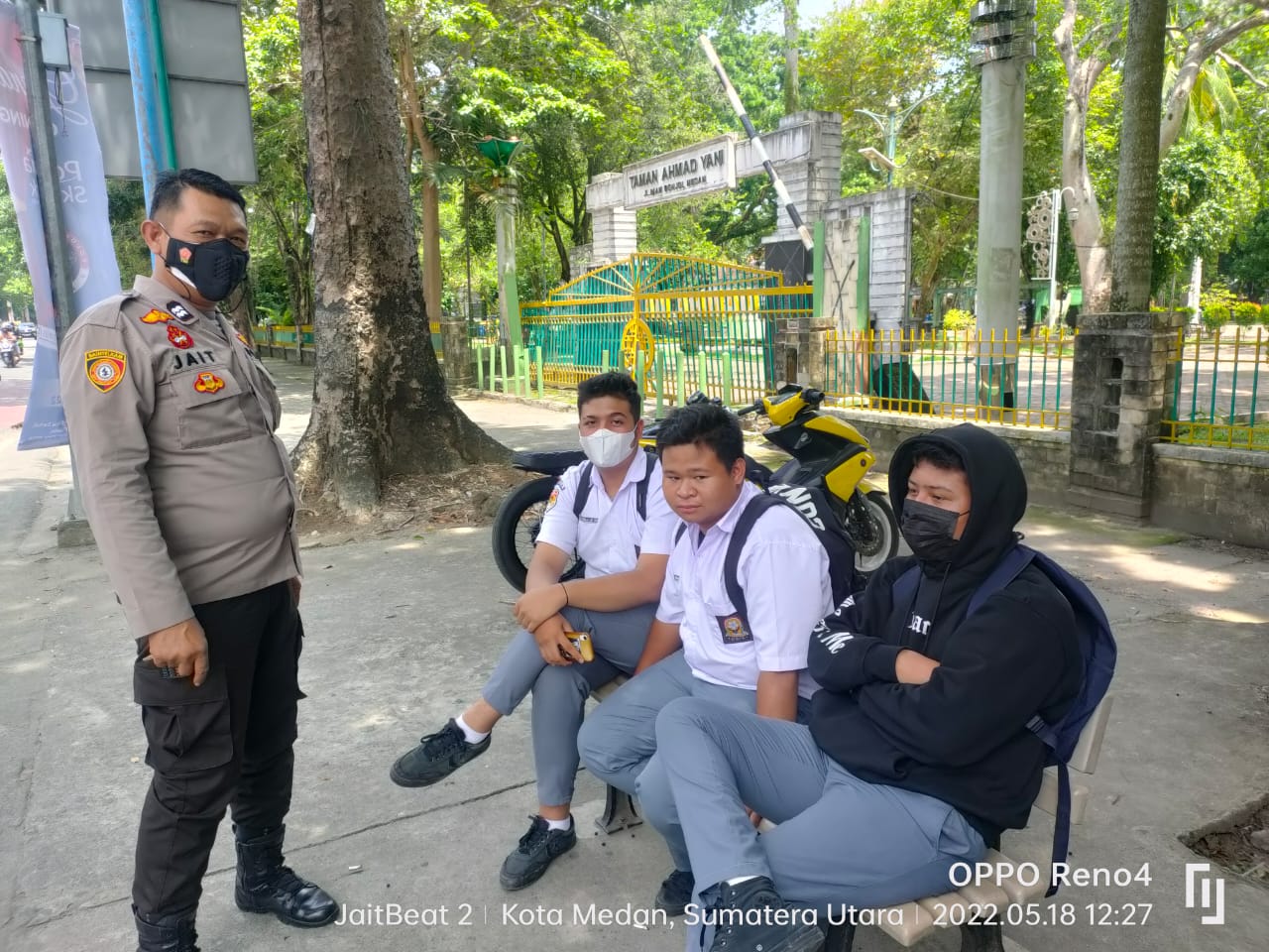 MEDAN | TRANSPUBLIK.co.id – Unit Samapta Polsek Medan Kota gerak cepat cegah tawuran antar anak sekolah yang depan Sekolah Yayasan Harapan Jalan Imam Bonjol, Kecamatan Medan Maimun.