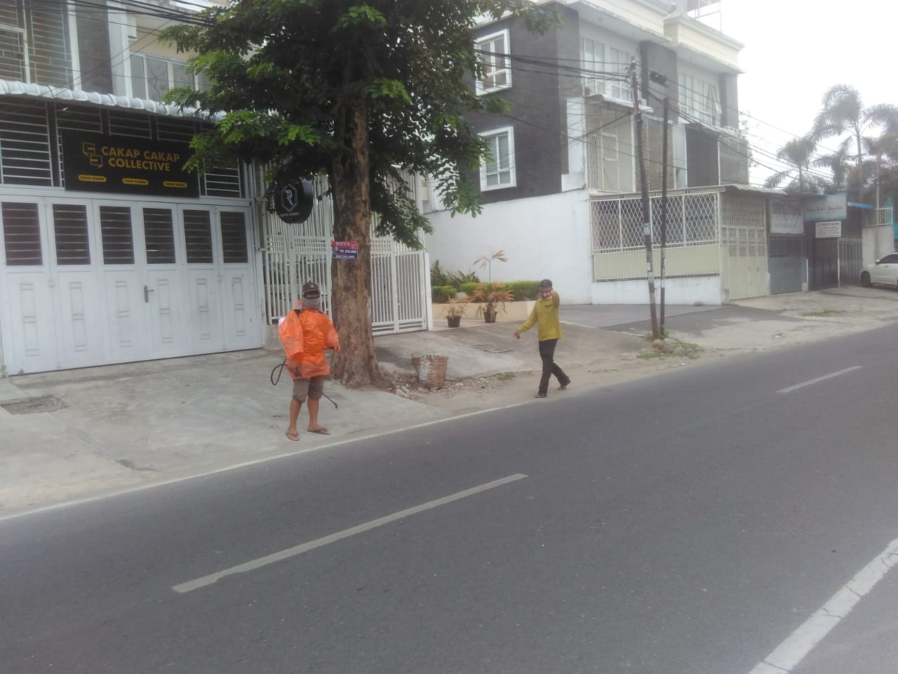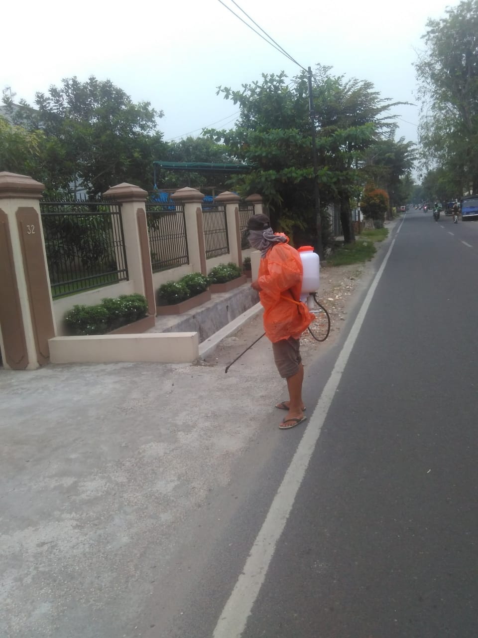 Penyemprotan dilakukan dengan memakai masker dan mantel berwarna orange sebagai pelindung diri serta menggunakan alat semprotan yang merupakan bantuan dari pihak Kecamatan Medan Selayang,” ungkap Usman.