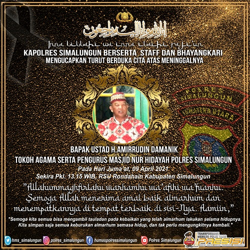 Ketika dikonfirmasi Kapolres Simalungun AKBP Agus Waluyo, S.I.K., mengucapkan “Inna lillahi wa inna ilaihi raji’un, Saya Kapolres Simalungun berserta Staf dan Bhayangkari mengucapkan Turut berduka Cita atas meninggalnya Tokoh agama Sekaligus Ketua Kenajiran Masjid Nur Hidayah Polres Simalungun Bapak Ustad H.Amirrudin Damanik, “Allahummaghfirlahu warhamhu wa’afihi wa’fuanhu”, Semoga Allah menerima amal baik almarhum dan menempatkannya di tempat terbaik di sisi-Nya. Amin,” ucap Kapolres.