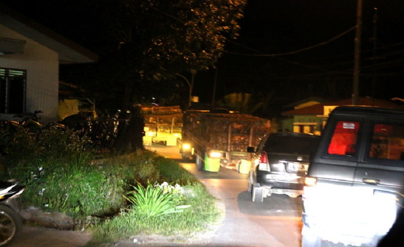 Terlihat jelas mobil truk tanpa dilengkapi nomor polisi dibagian belakang seperti lazimnya sesuai ketentuan. Namun dibagian depan truk semuanya bernomor polisi pelat kenderaan BM atau dari Provinsi Riau.