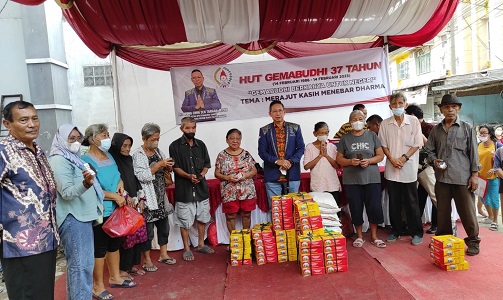 Medan – Ketua Generasi Muda Buddhis Indonesia (Gemabudhi) Drs. Wong Chun Sen, M.Pd.B merayakan Hari Ulang Tahun (HUT) Gemabudhi ke-37 tahun di Vihara Budha Cikung yang berada di Jalan Pukat Banting I/Rahayu No. 96, Kelurahan Bantan, Kecamatan Medan Tembung, Kota Medan, Sabtu (11/2/2023) sore.
