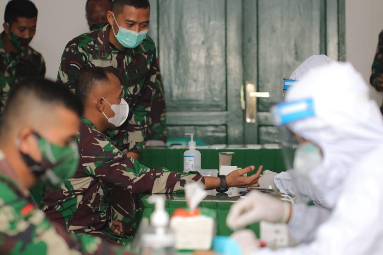 Yonif 121/MK Laksanakan Pemeriksaan Rapid Test Antibody Covid-19 kepada Seluruh Personel Yonif 121/MK